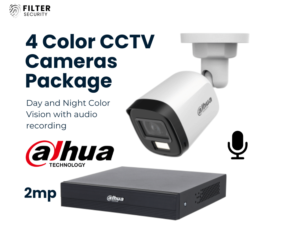 4 Dahua CCTV Cameras – Day and Night Color Vision with Audio – Dahua