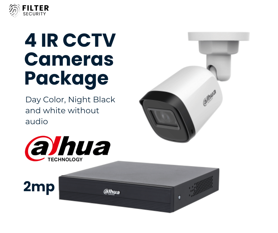 4 Dahua CCTV Cameras – Simple Day Color / Night B/W 1080p, No Audio – Dahua